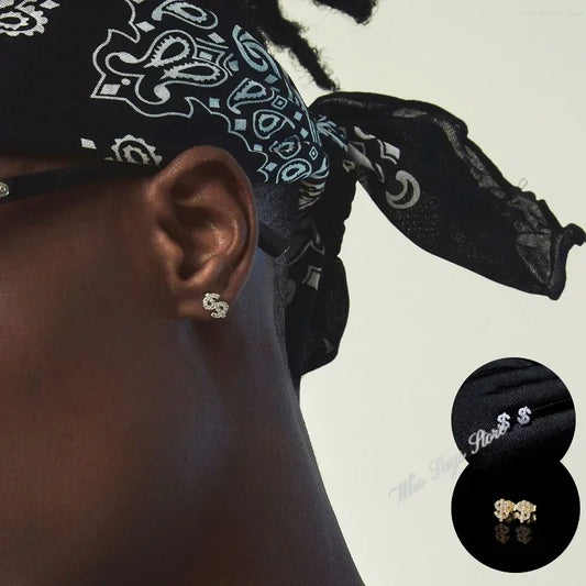 Iced Out Dollar Sign Stud Earrings