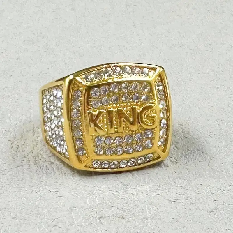 Elevate your style with our Full Rhinestone King Rings. These rings are expertly crafted with precision and adorned with sparkling rhinestones. Make a statement with our regal and luxurious design. Perfect for any occasion, these rings are sure to make you stand out from the crowd.